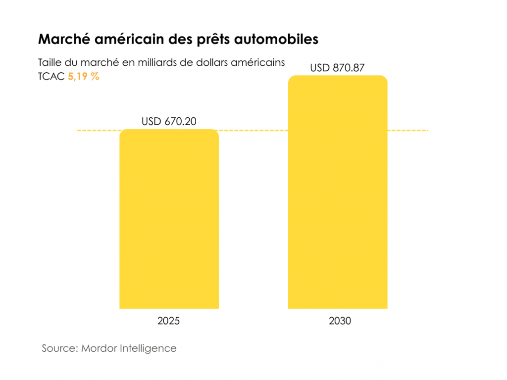 Selon l’article de Precedence Research : taille, part et tendances du marché de la finance automobile de 2025 à 2034 — en 2025, la taille du marché mondial du financement automobile s’établissait à 320,67 milliards de dollars américains. Ce secteur devrait atteindre 548,17 milliards de dollars américains d’ici 2034, avec un TCAC de 6,38 % [i].
