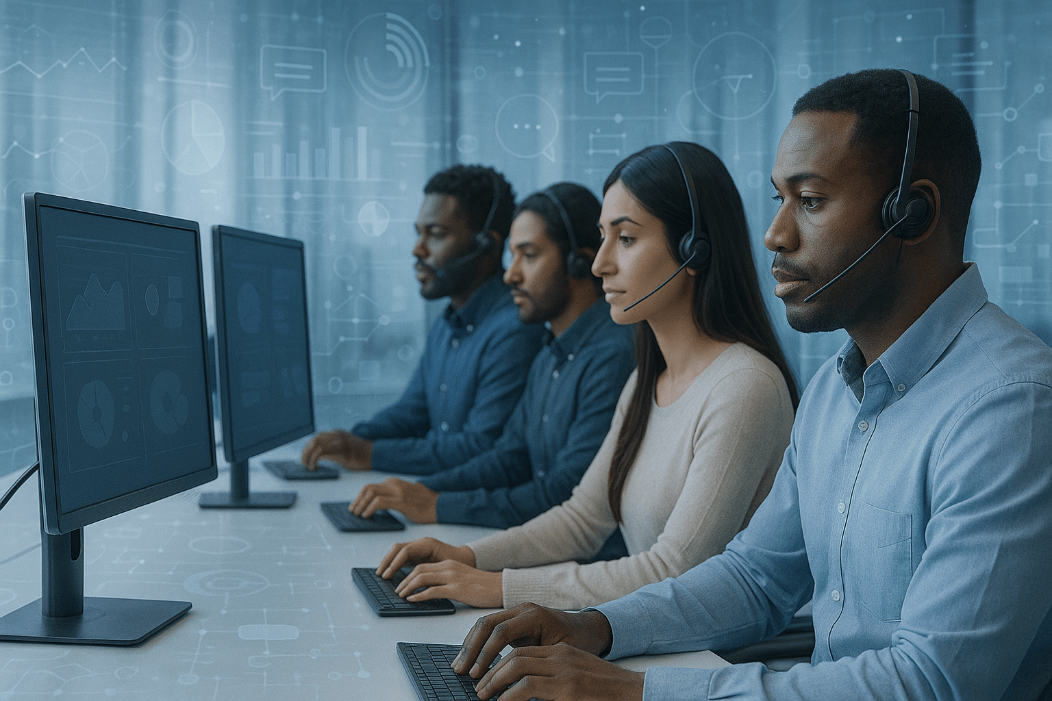 Imaginons une situation où chaque agent est équipé d’un copilote d’IA. Ce copilote en IA agit comme assistant en temps réel, soutenant activement les agents en écoutant les clients et :